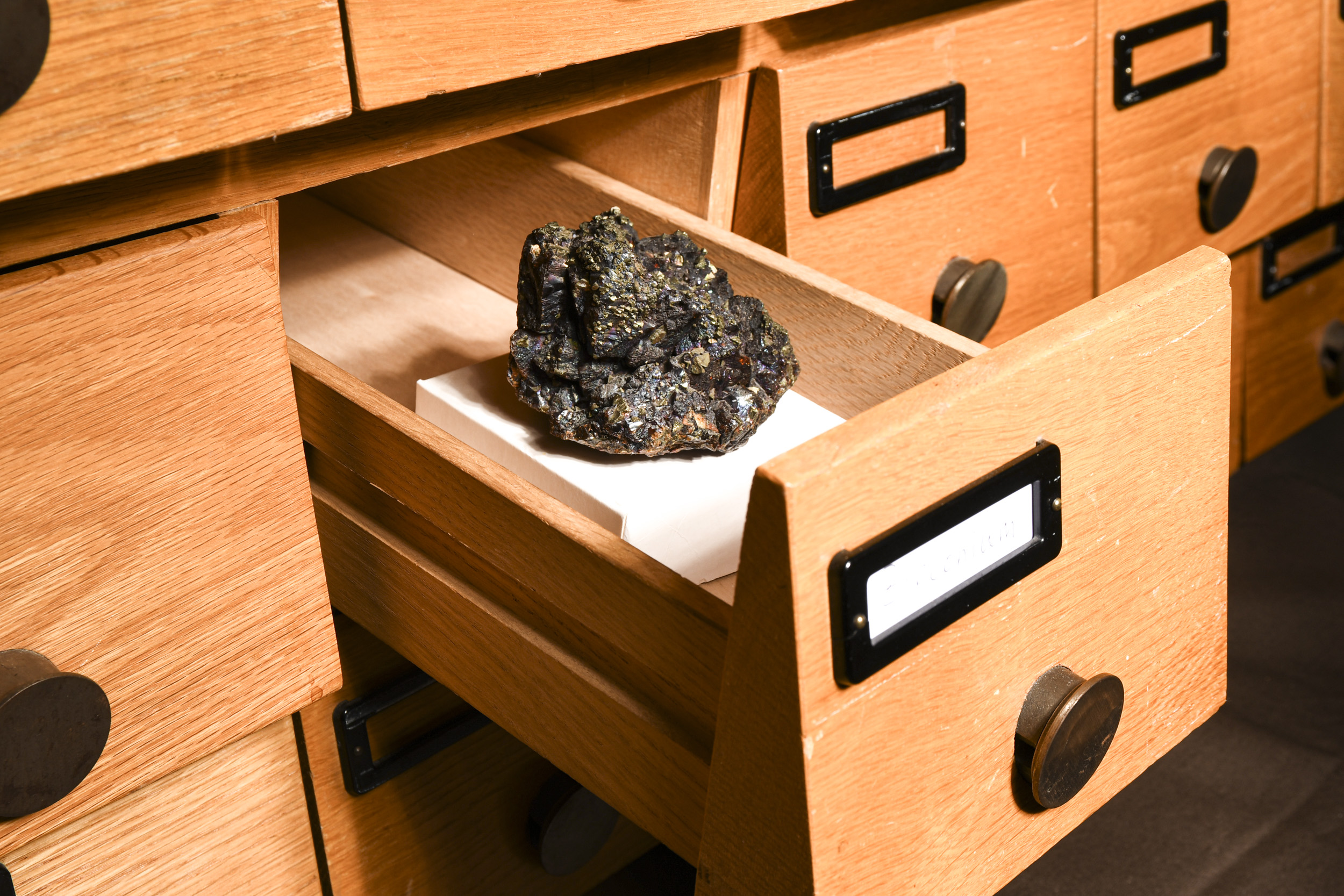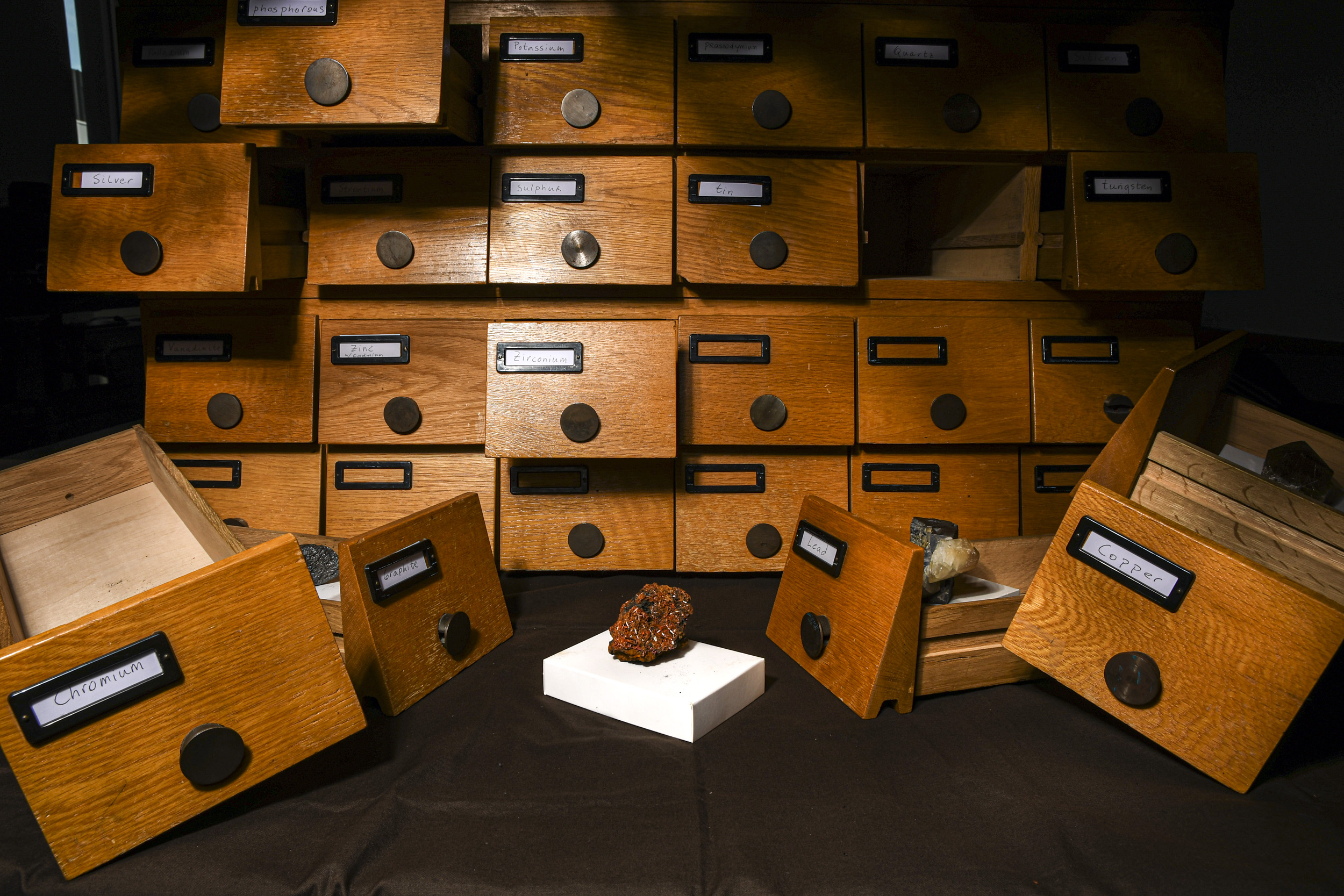 Die Materialbibliothek, erstellt von Maja van der Velden und Andrea Gasparini, ist eine mobile Sammlung jener Mineralien – oder, einfacher gesagt, jener Steine –, die in den Schlüsseltechnologien unserer Gegenwart enthalten sind: Smartphones, Laptops, Rechenzentren, Sensoren, Solarpanels und Batterien. Indem sie diese Stückchen Erde greifbar macht, verweist die Bibliothek auf ihre Verflechtungen mit ihrer Gebrauchskraft – mit Menschen ebenso wie mit dem Planeten – und lädt dazu ein, die sozialen und ökologischen Auswirkungen sowohl der Digitalisierung als auch der Energiewende kritisch zu reflektieren. Aktiviert wird die Materialbibliothek durch sogenannte Geo-Tech-Workshops. In diesen zerlegen die Teilnehmenden alltägliche digitale Geräte sorgfältig, identifizieren die Steine, die ihre Funktionsweise ermöglichen, und verorten sie sowohl innerhalb der digitalen Schaltkreise als auch auf einer erweiterten geopolitischen Landkarte. So eröffnen sich Gespräche über die komplexen Wege, auf denen diese Materialien in unsere Geräte gelangen.