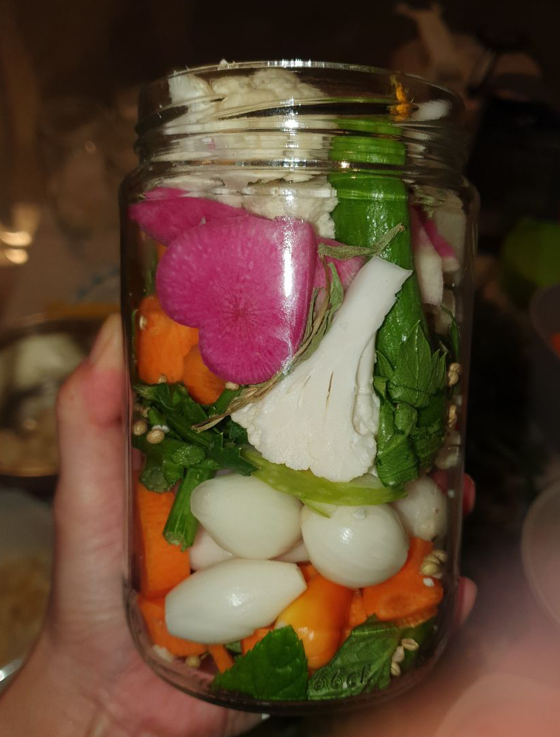 During these political times when intersectional solidarity is needed more than ever, we will take a moment to inscribe our desired manifestations onto the pickles. As we embody these pickles by eating them in the near future, we allow the act of preservation to infuse into our bodies with more care and acknowledgement.